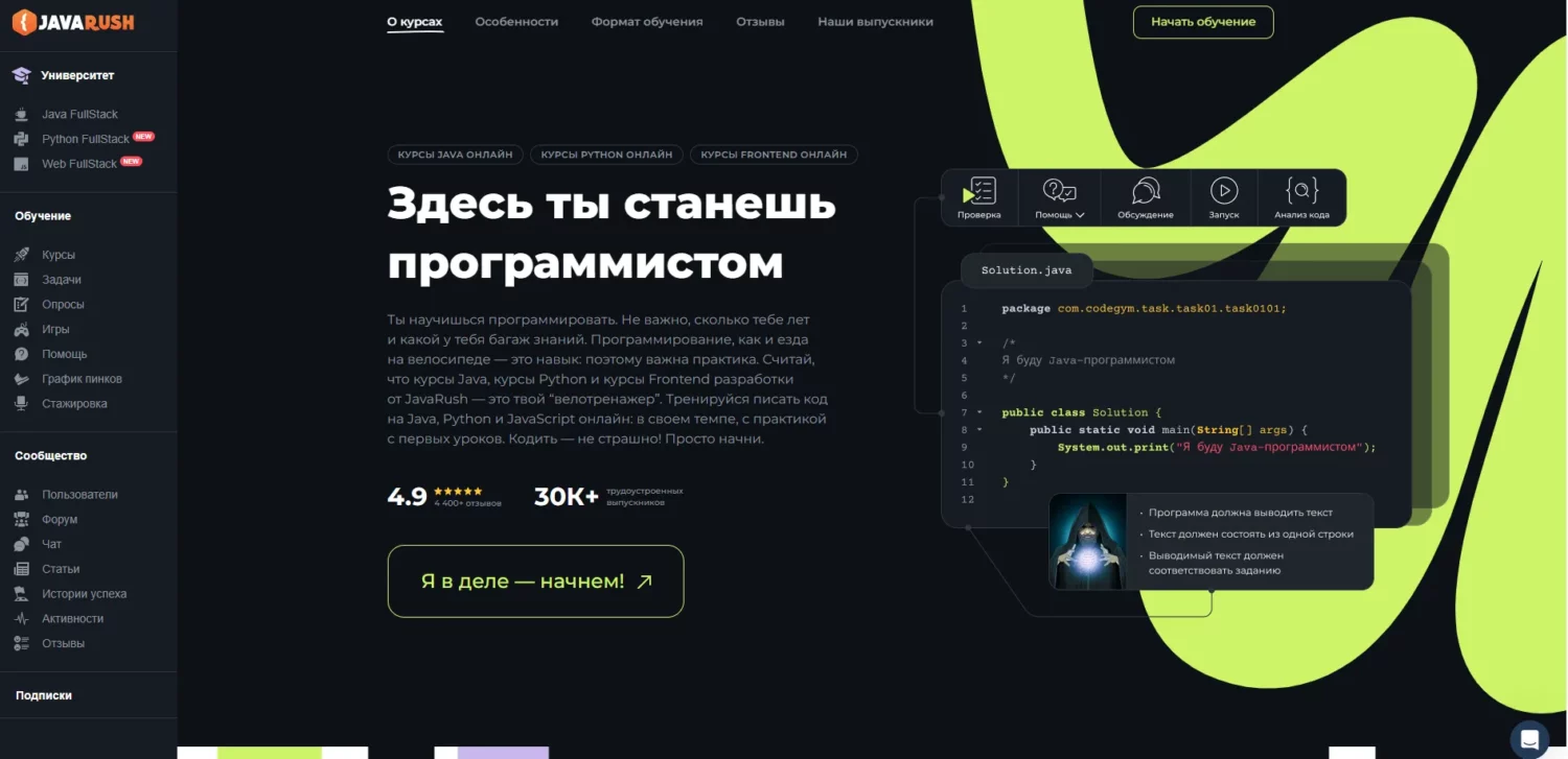 Второе отличие — ощущение локальности. JavaRush ощущается как «свой» для русскоязычного студента: примеры, шутки, комьюнити, Success Stories — всё это заточено под знакомый культурный контекст. CodeGym позиционирует себя как международный продукт, и его упаковка соответствует стандартам глобального EdTech-рынка.