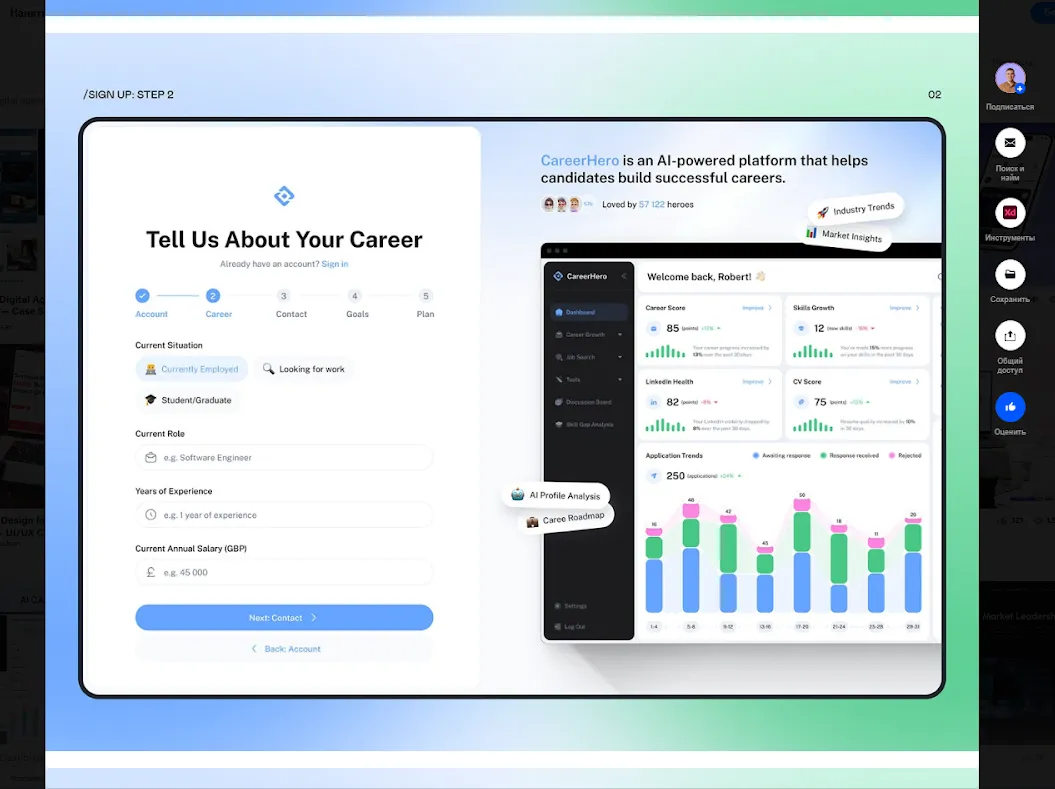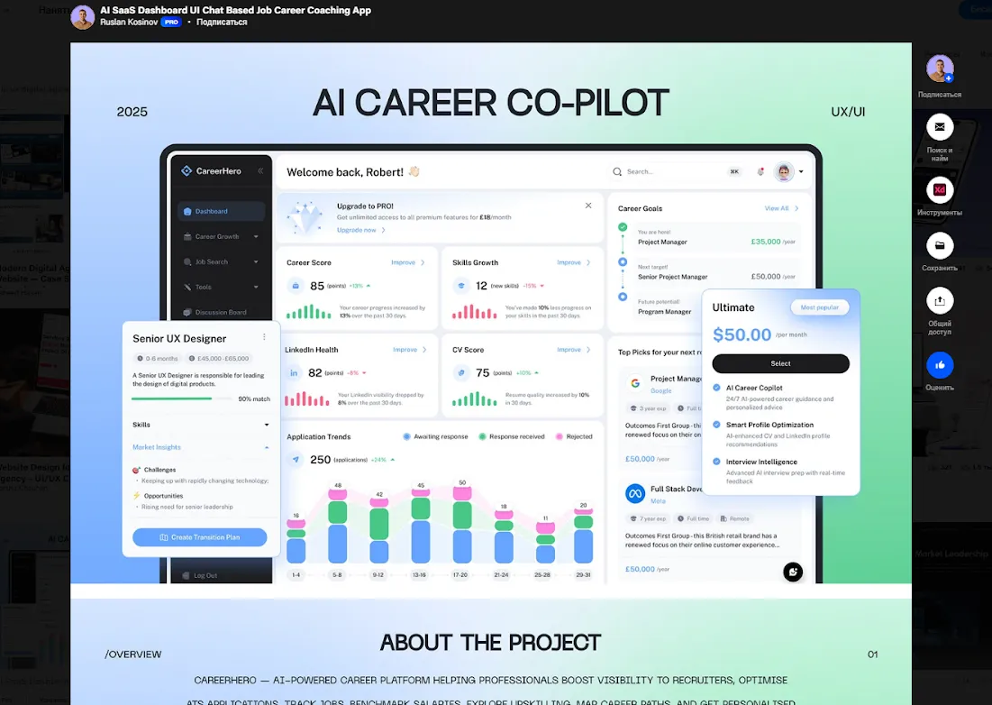 - Пример референс-листа AI-приложения для развития карьеры. Источник: behance.