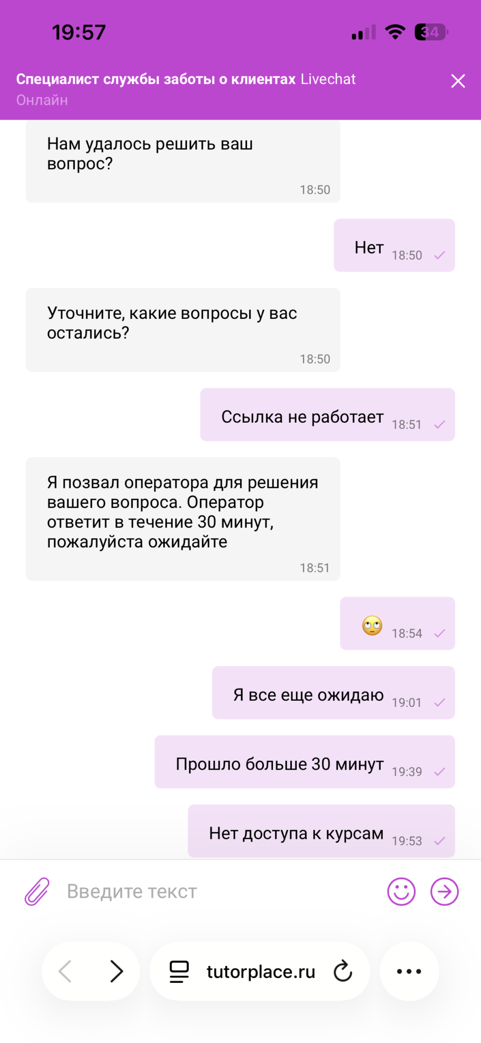 Иван, Вы кто такой??? Я не с Вами переписываюсь и не на Вас жалобу пишу. У меня претензии к недобросовестной организации tutorplace, которая обманом, противозаконно списывает деньги. И подобного бизнеса быть не должно! Желаю этой организации скорейшего ухода с рынка услуг!